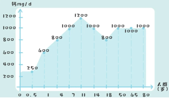 首先,劑量不要超過(guò)推薦量。下圖是各年齡階段孩子的推薦鈣攝入量。鈣補(bǔ)多了不但容易便秘、腸胃不適,還會(huì)對(duì)身體器官造成額外的負(fù)擔(dān)。小劑量、多頻次的吸收效果更好。 劑量小,更靈活,可以隨時(shí)調(diào)整。哪天飲食鈣量攝入少了,多吃一次鈣劑;反之,就少吃一次。