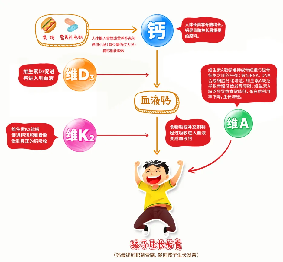 為什么把維生素A、D、K,放在一起來(lái)說(shuō)明,因?yàn)榫S生素A能夠增強(qiáng)長(zhǎng)骨骨骺軟骨中的細(xì)胞活性,促進(jìn)長(zhǎng)骨骨骼中軟骨細(xì)胞的生長(zhǎng);維生素D3促進(jìn)鈣質(zhì)的吸收和利用;維生素K2優(yōu)化鈣運(yùn)輸,把鈣精準(zhǔn)輸送到骨骼,即領(lǐng)鈣入骨。維生素D3+維生素K2完成補(bǔ)鈣閉環(huán)成就好骨骼。