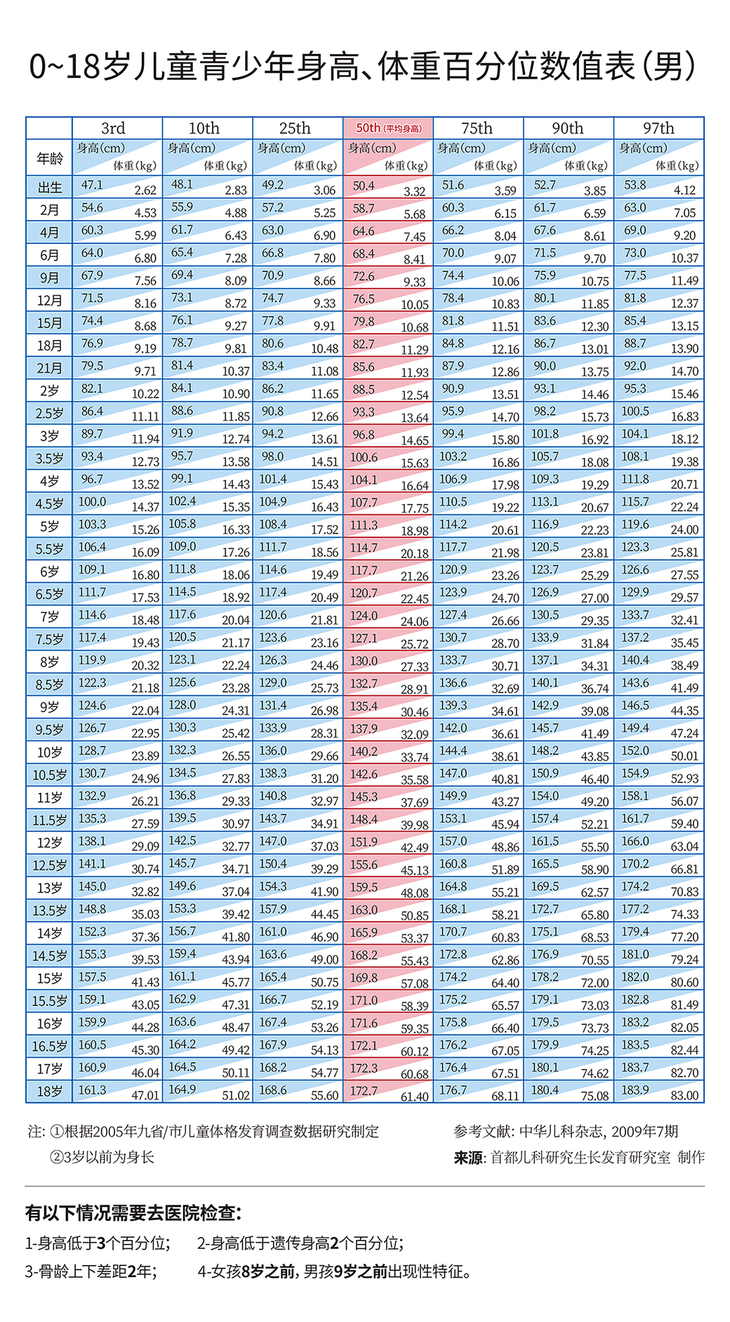 首先家長(zhǎng)要了解您的孩子目前身高是否正常,可以通過(guò)下表自測(cè):